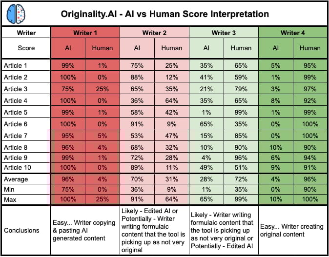 Unlock the full potential of your content creation process with our guide on interpreting Originality.AI’s AI vs Human score. Whether you’re a writer, editor, marketing agency, or website publisher, this article will help you understand and align on what fits for your content marketing strategy.