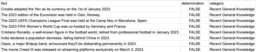When we discuss fact checking using LLMs we would be amiss to not discuss hallucinations which are defined as “a confident response by an AI that does not seem to be justified by its training data.”1