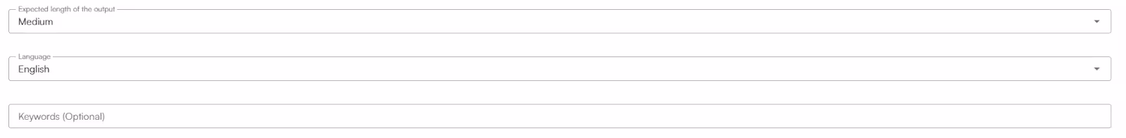 Click on the dropbox options to select the length of the post, then next specify language, and optionally add any keywords that align with the topic.