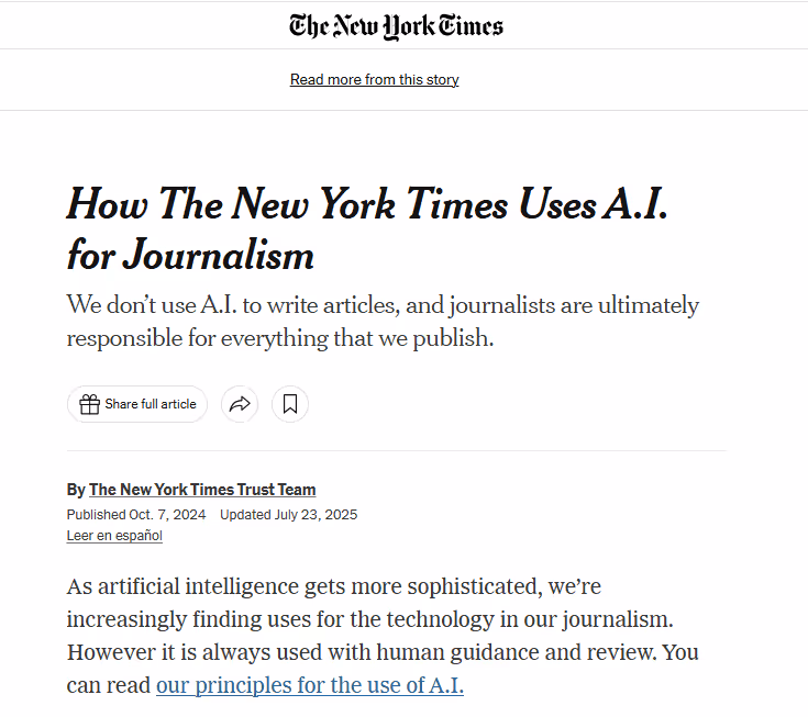 As you can imagine, the NYT staff have very clear and strict guidelines regarding AI usage.