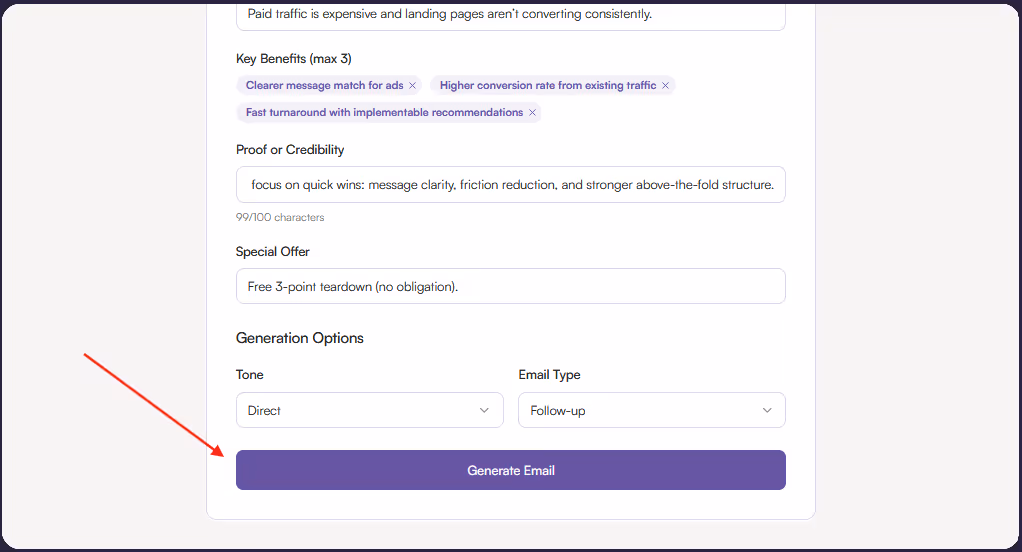 Click ‘Generate Email’